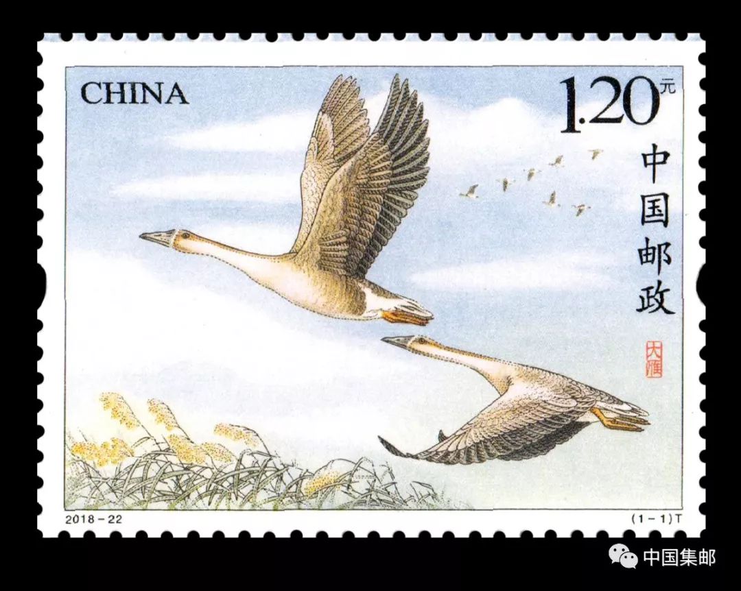 中国邮政定于2018年8月17日发行《大雁》特种邮票1套1枚,邮票面值1.20元。