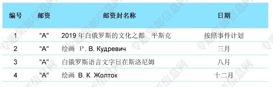 白俄罗斯2019年纪念邮资封发行计划【暂定计划】
