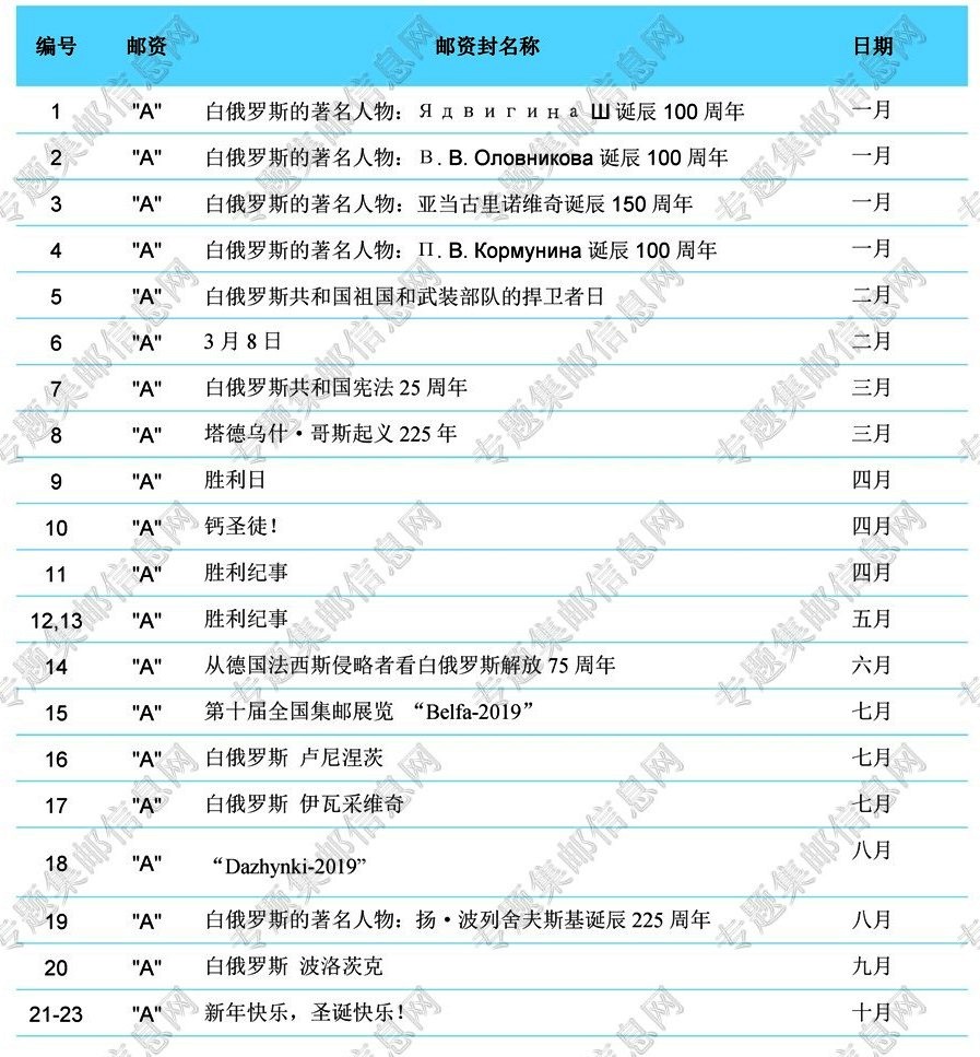 白俄罗斯2019年美术邮资封发行计划【暂定计划】