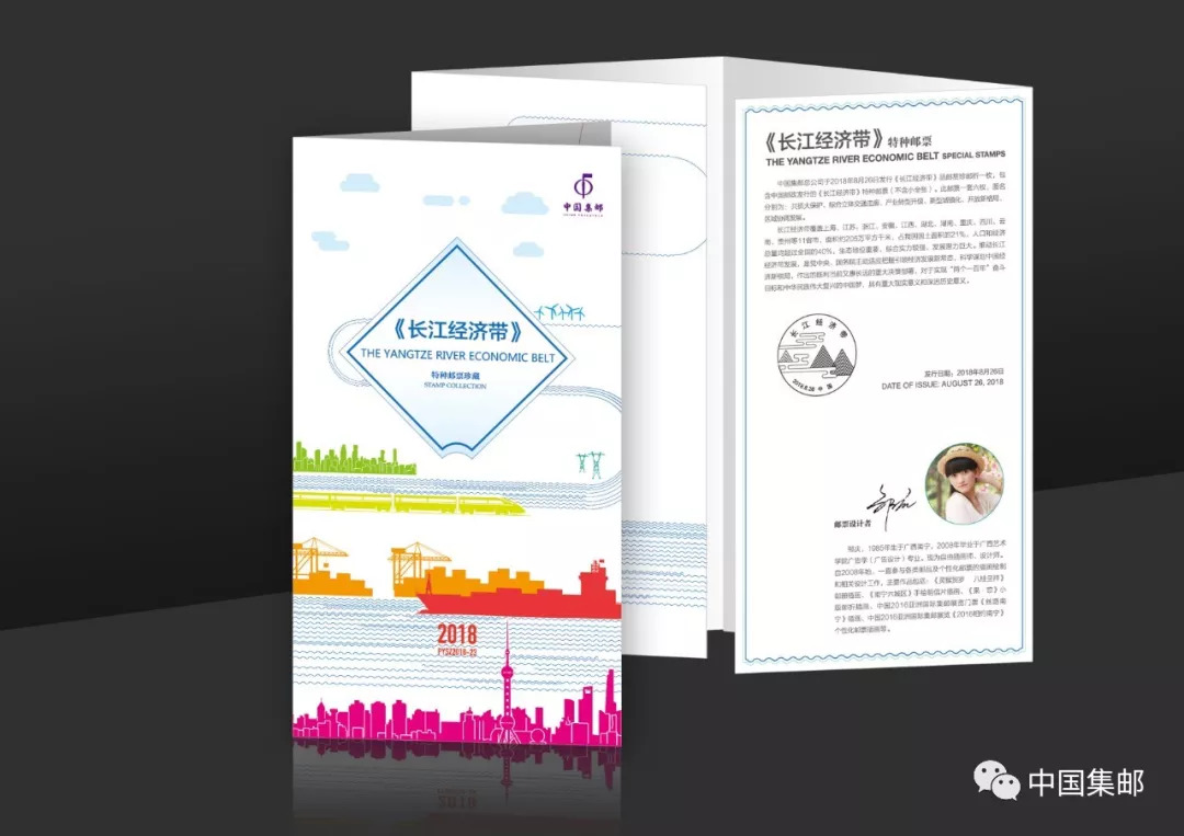 中国邮政定于2018年8月26日发行《长江经济带》特种邮票1套6枚,小全张1枚。中国集邮总公司也将在当天同步发行《长江经济带》系列邮品,与您一同分享!