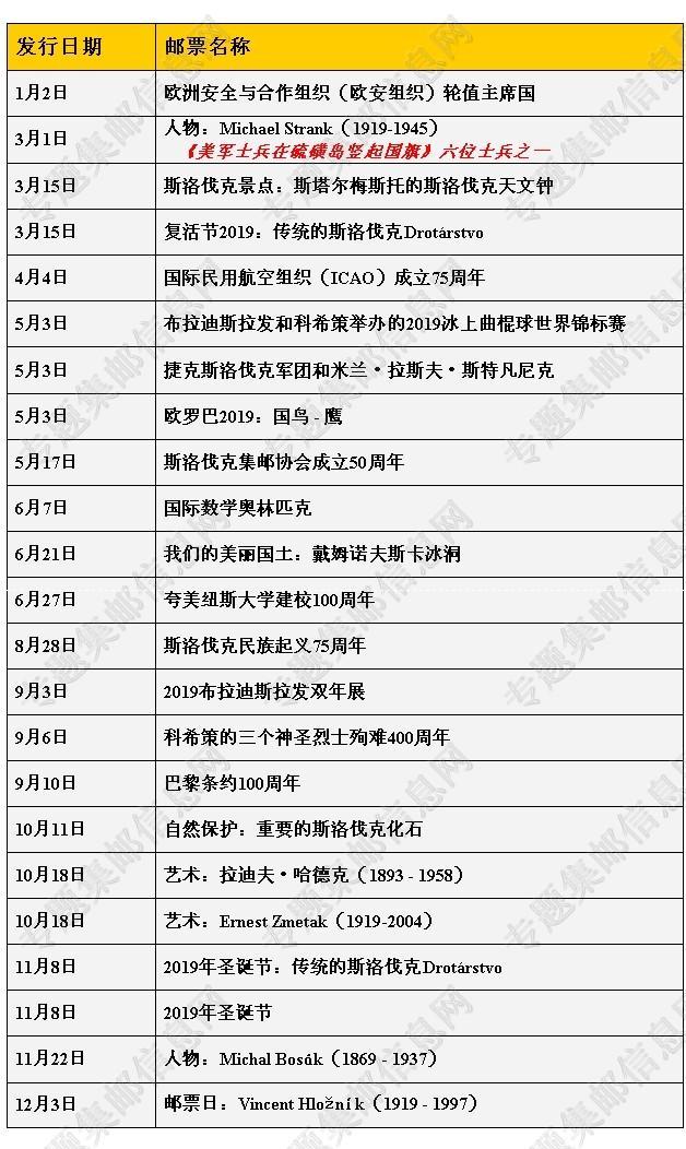 斯洛伐克2019年新邮发行计划 斯洛伐克2019年邮票发行计划...