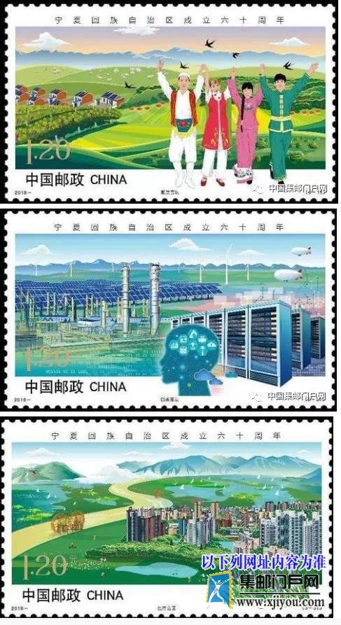 中国邮政定于2018年9月19日发行《宁夏回族自治区成立六十周年》纪念邮票1套3枚。集邮门户网消息详情如下: