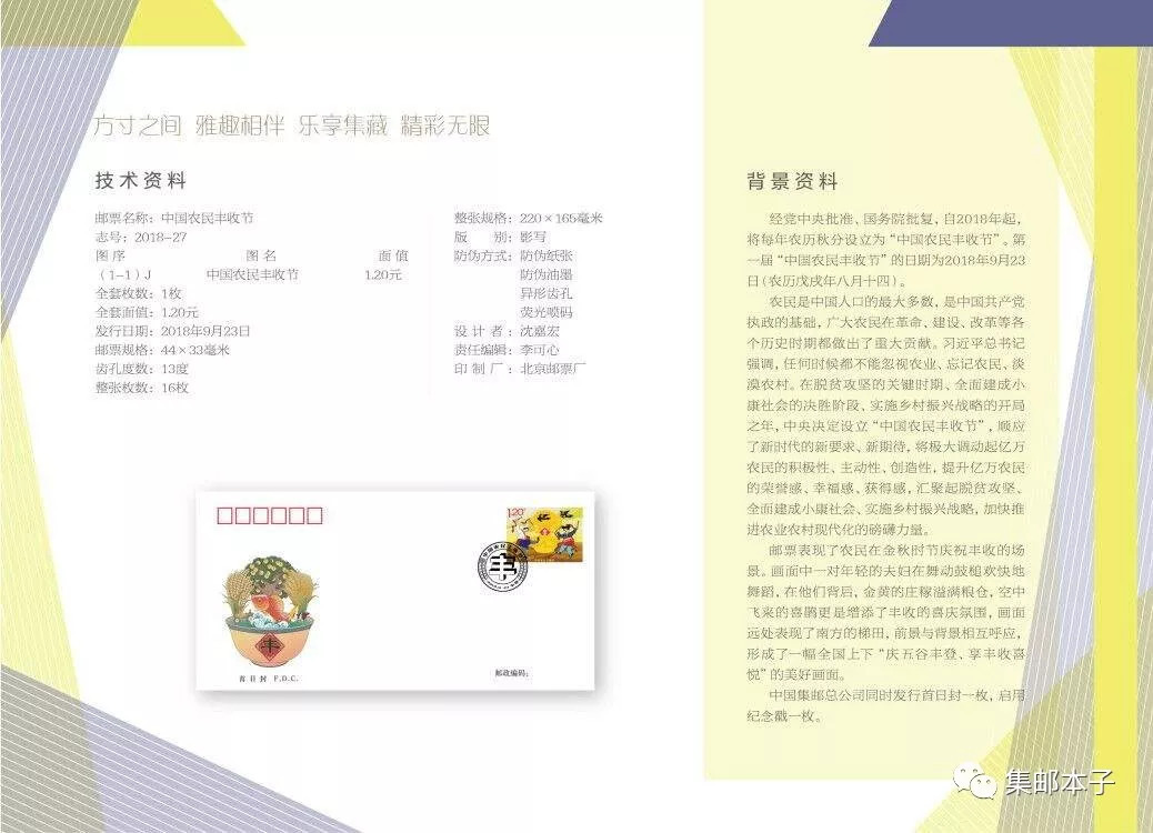 中国邮政定于2018年9月23日发行《中国农民丰收节》纪念邮票1套1枚。详情如下: