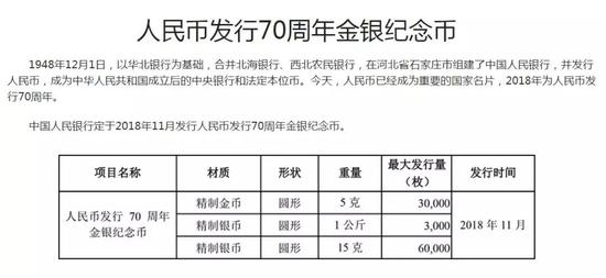 首先,根据金总发布的《2018年贵金属纪念币项目发行计划》,人民币发行70周年金银纪念币今年发行。