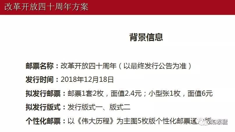刚刚,网上已曝光了《改革开放四十周年》邮票的设计图稿,发行日期也定了,安排在12月18日。下面先睹为快!