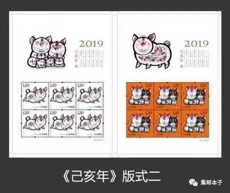 四轮猪小版上的两头猪与邮票类似又不相同。第二枚使用的红色与四轮狗很相近。第四轮生肖的底色整体规划不如第一轮好。