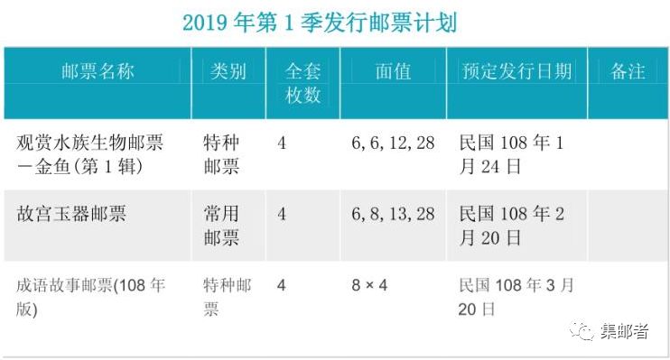 而中国台湾2019年第1季度邮票发行计划也已出炉: