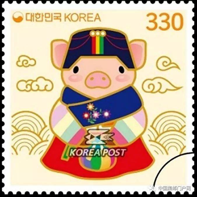 韩国猪年生肖邮票发行,全套2枚(小版张图)