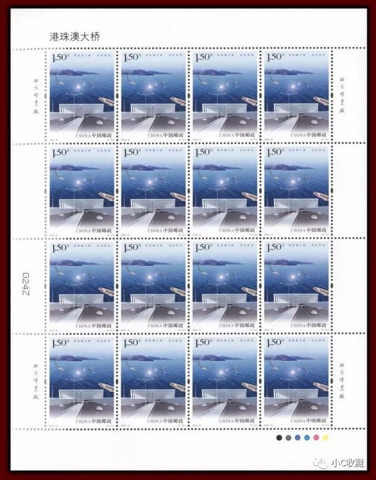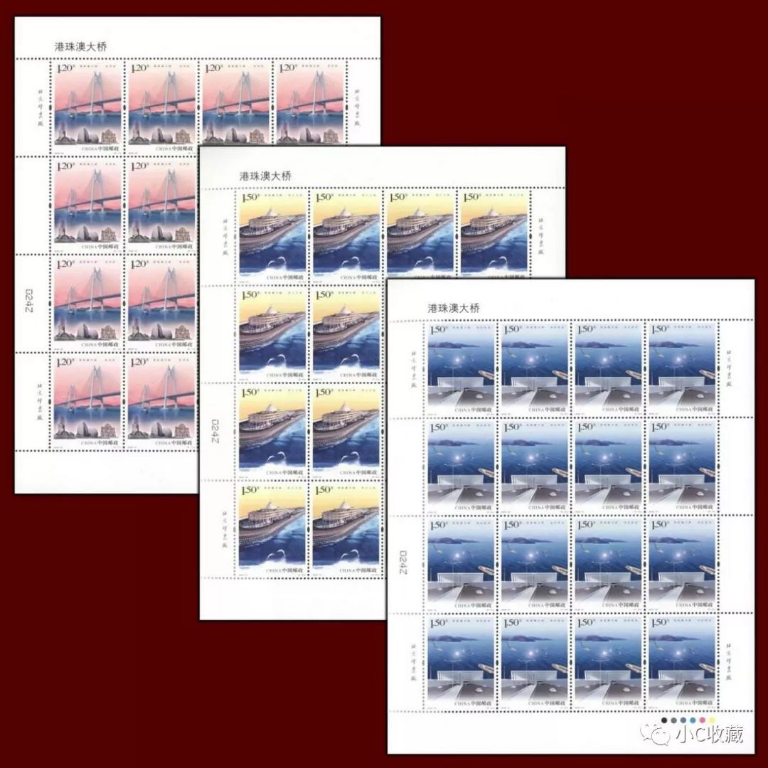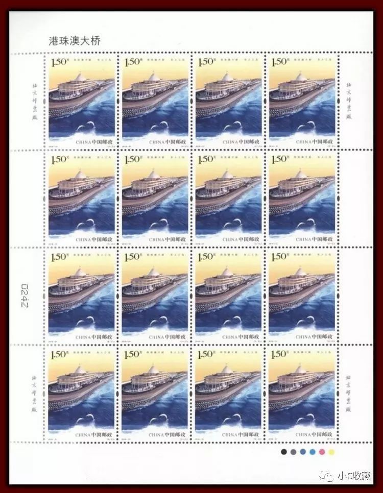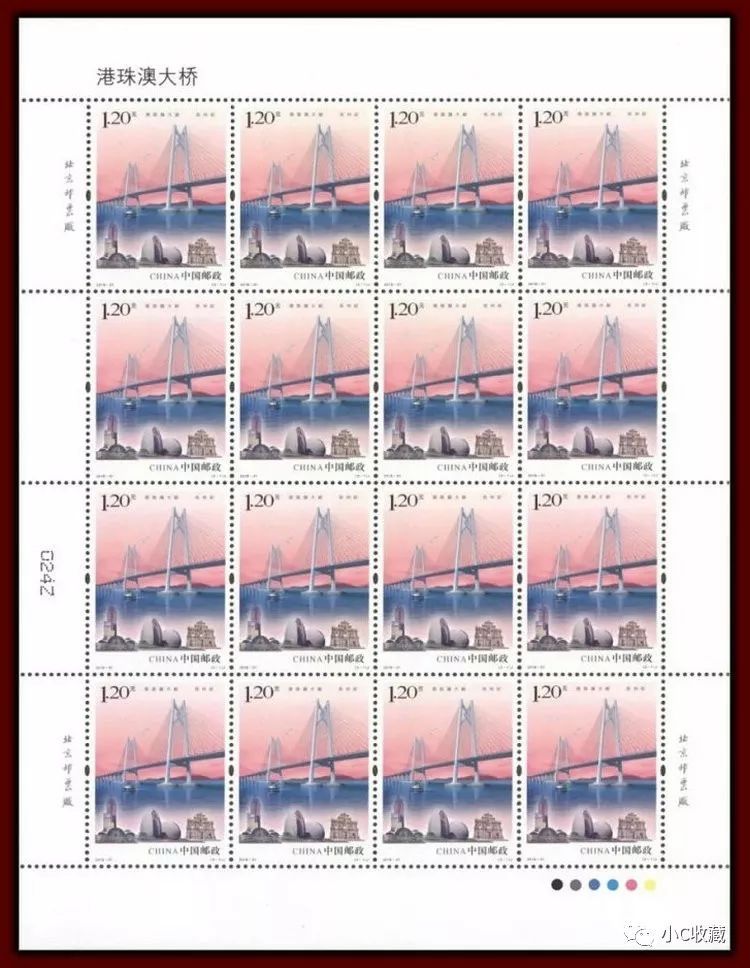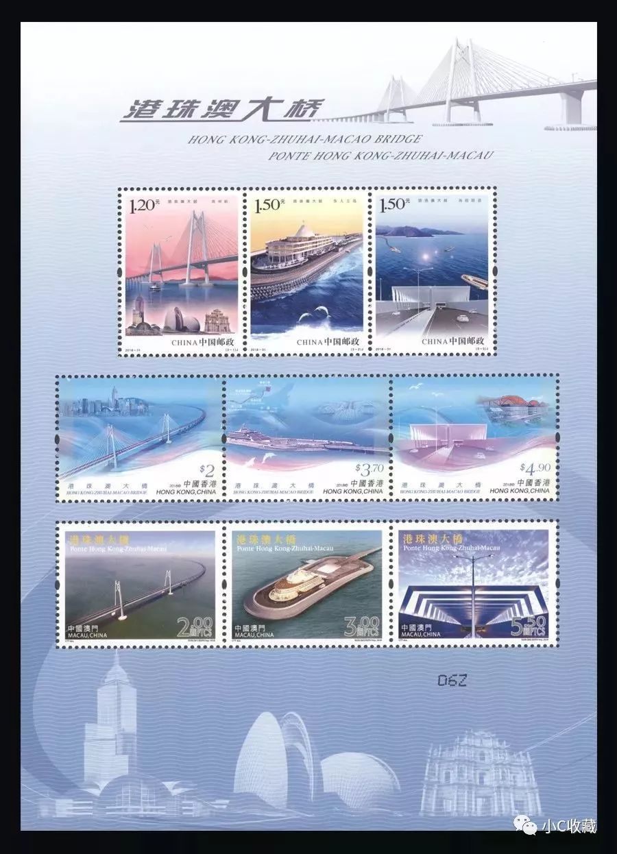 另与香港邮政、澳门邮电共同印制同题材邮票小全张1枚,内含中国邮政、香港邮政、澳门邮电邮票各3枚。小全张整张规格:140×195毫米。小全张设计者:史渊。小全张资料提供:港珠澳大桥管理局、中交公路规划设计院有限公司。
