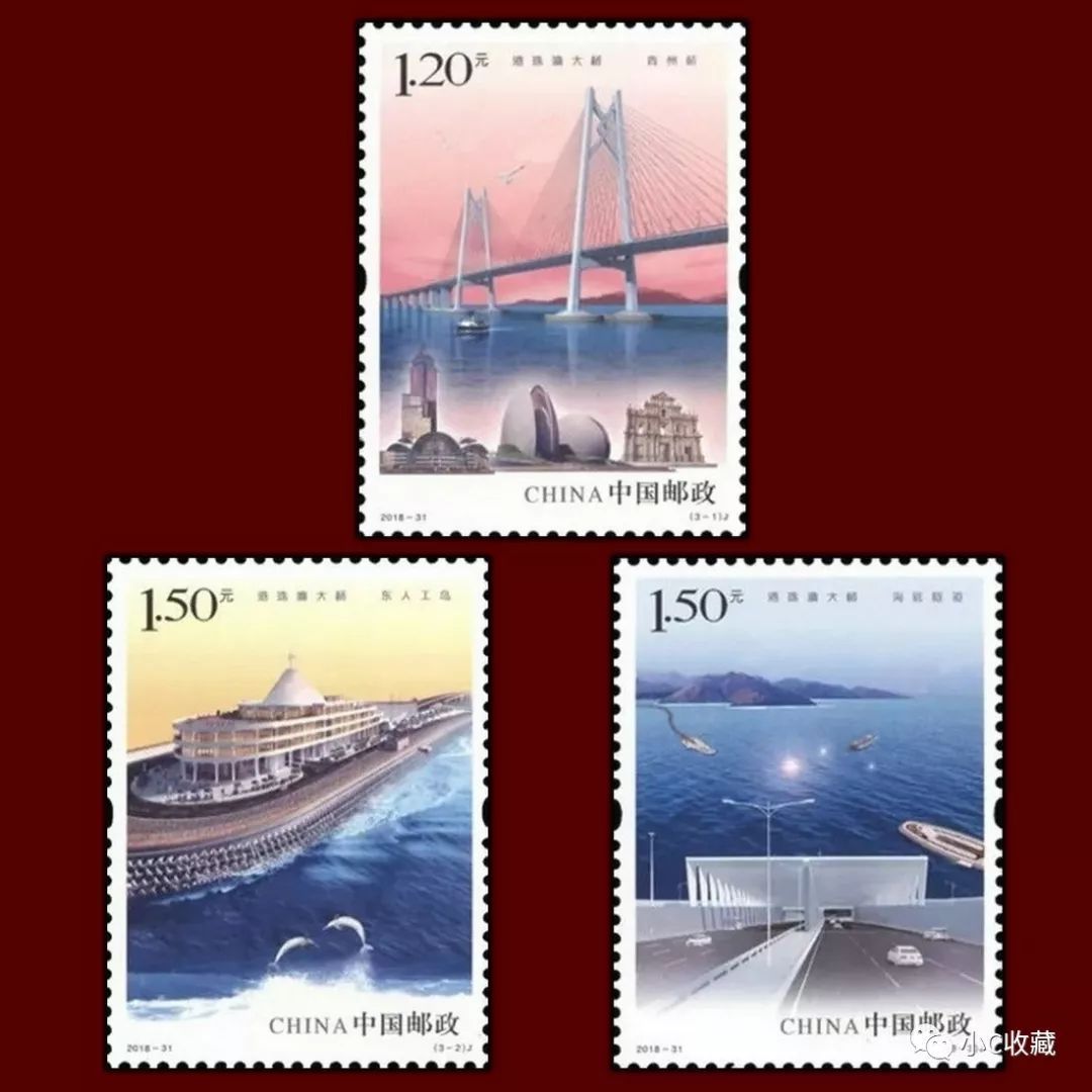 中国邮政定于2018年10月30日发行《港珠澳大桥》纪念邮票1套3枚,邮票图案名称分别为:青州桥、东人工岛和海底隧道。下面先睹为快!