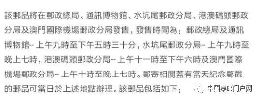 集邮门户网讯 今天澳门邮电司发布《港珠澳大全》三地短腿小全张发行量和分配公告、销售地点同时公布(见下图):中国邮政与香港邮政、澳门邮电共同印制同题材邮票小全张1枚,内含中国邮政、香港邮政、澳门邮电邮票各3枚。小全张整张规格:140×195毫米。集邮门户网讯,澳门邮电司说,小全张总发行量为26.2万,其中澳门发行3万枚,之前香港已公布香港发行量为10万枚,那么剩下13.2万枚是大陆中国邮政发行量。小全张销售地点见下图。澳门方面发行价为40元澳门币。