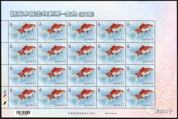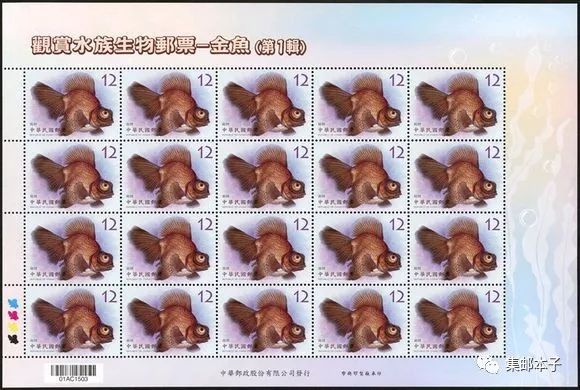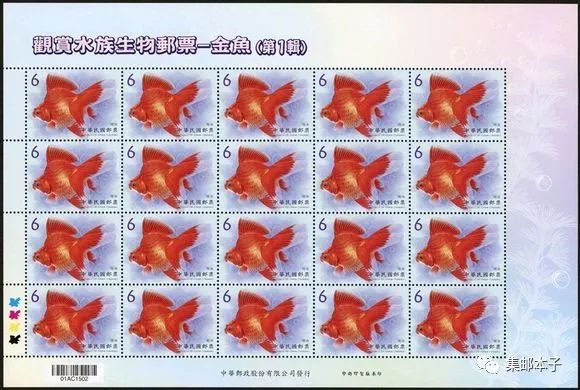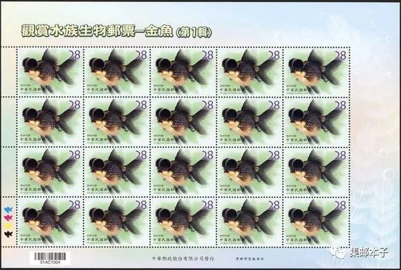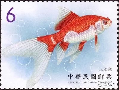金鱼原产于中国,是鲫鱼的突变种,饲养金鱼谐音「金玉(鱼)满堂」,寓意吉祥、招财。为介绍金鱼之美,台湾特以玉如意、琉金、龙睛及鹅头珠鳞为主题规划邮票1套4枚,图案简介如下: