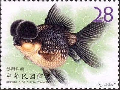 四、鹅头珠鳞(面值28元):又称「皇冠珠鳞」,鳞片似一颗颗珍珠镶在鱼体般,大而明显。有滑顺的身躯曲线,游动时飘逸柔顺,头部饱满的头瘤,有如鹅的头部一般,常见的有单冠与双冠2种。