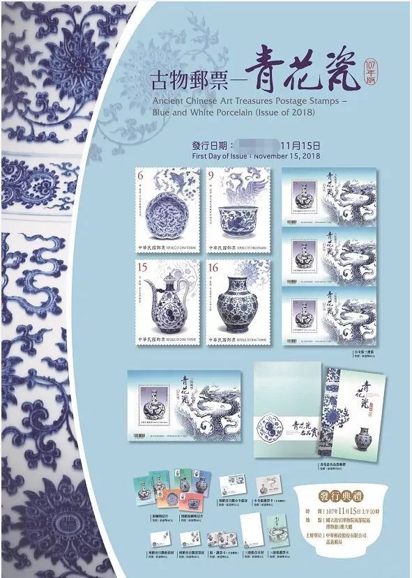 中华邮政(中国台湾)定于11月15日发行《青花瓷》邮票系列第二组一套四枚,小型张一枚、三连体小型张一枚。
