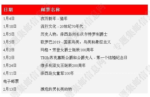 泽西岛2019年新邮发行计划 泽西岛2019年邮票发行计划...