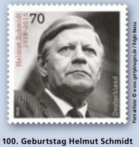 德国12月6日发行赫尔穆特施密特100岁生日邮票