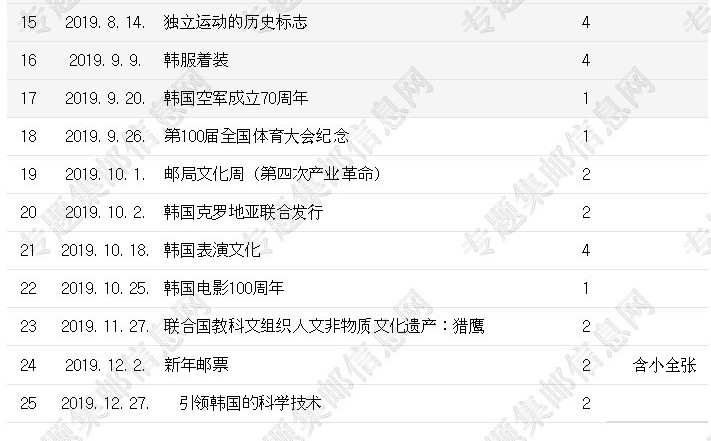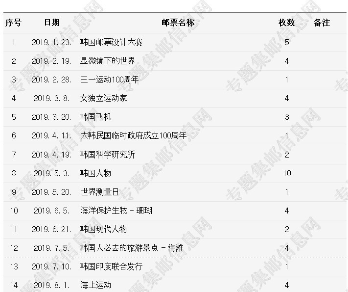 韩国2019年新邮发行计划 韩国2019年邮票发行计划...
