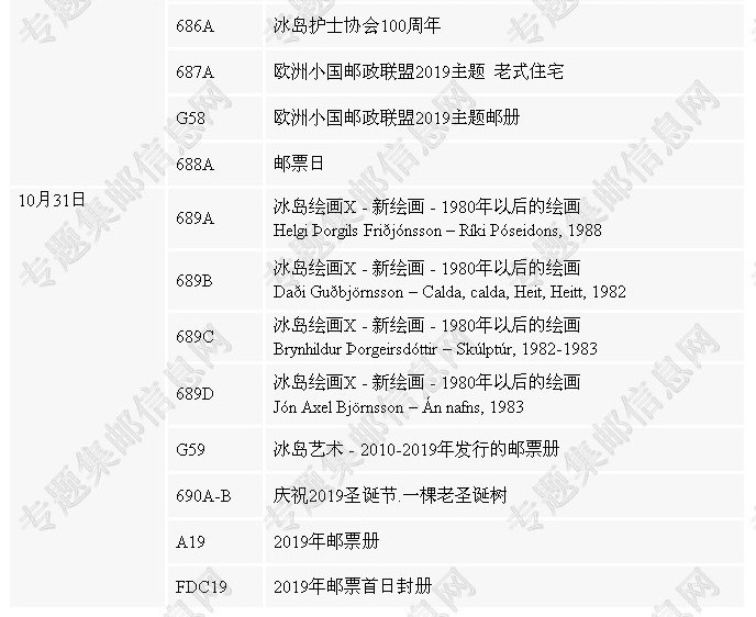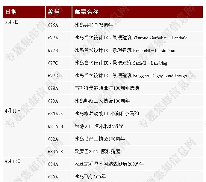 冰岛2019年新邮发行计划