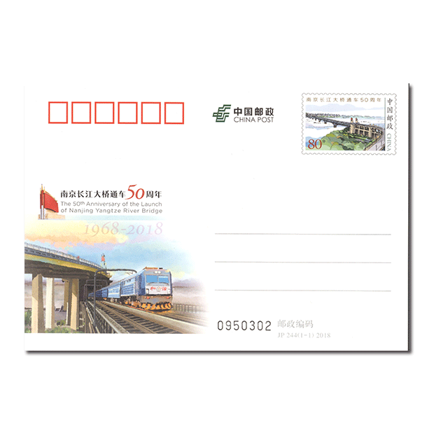 中国邮政定于2018年12月16日发行《南京长江大桥通车50周年》纪念邮资明信片1套1枚。详情如下: