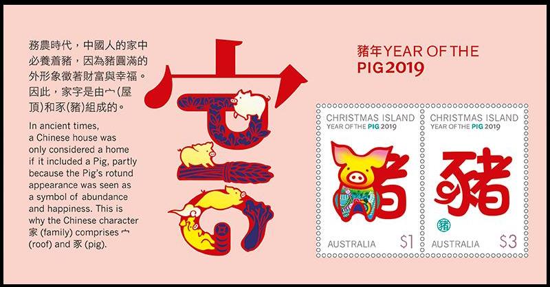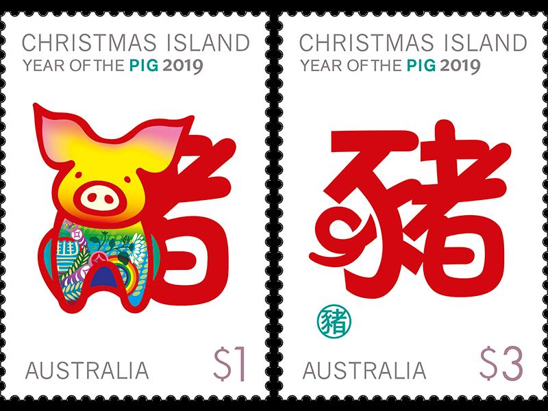 澳大利亚圣诞岛19年1月8日发行猪年邮票