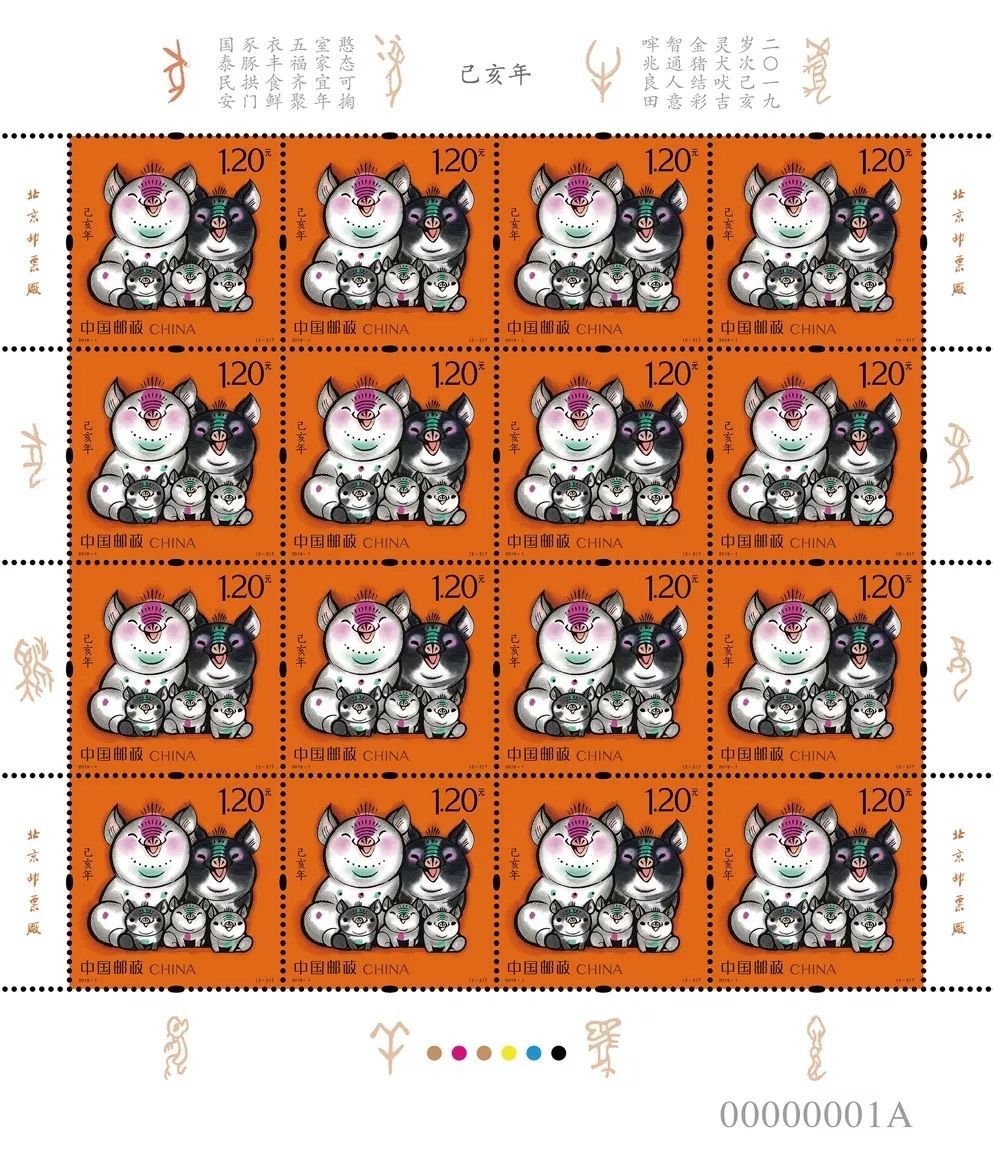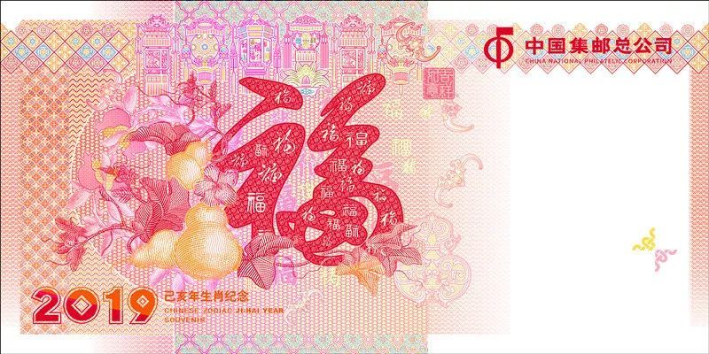 在两枚己亥生肖邮票通过无色荧光呈现在券面上的实现过程中,为了达到两枚底色反差较大能够统一,细小的面值文字能够清晰,我们与中钞的专家们反复商讨,试制,最终呈现完美效果。