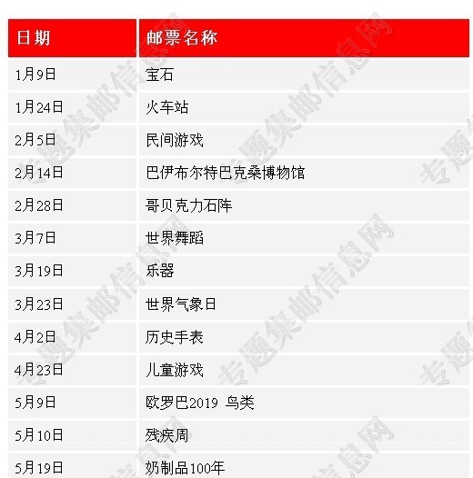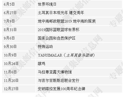 土耳其2019年新邮发行计划