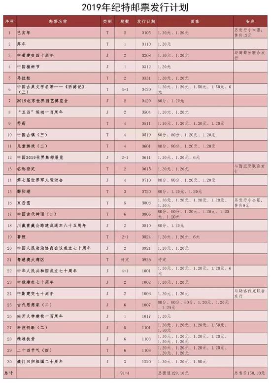 2019年的集邮计划,整理好了: