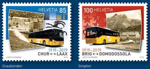 瑞士3月7日发行邮政巴士路线100周年邮票