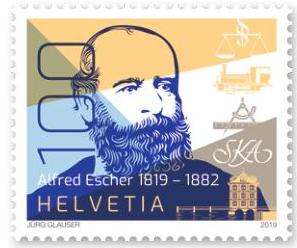 瑞士3月7日发行阿尔弗雷德埃舍尔诞辰200周年邮票