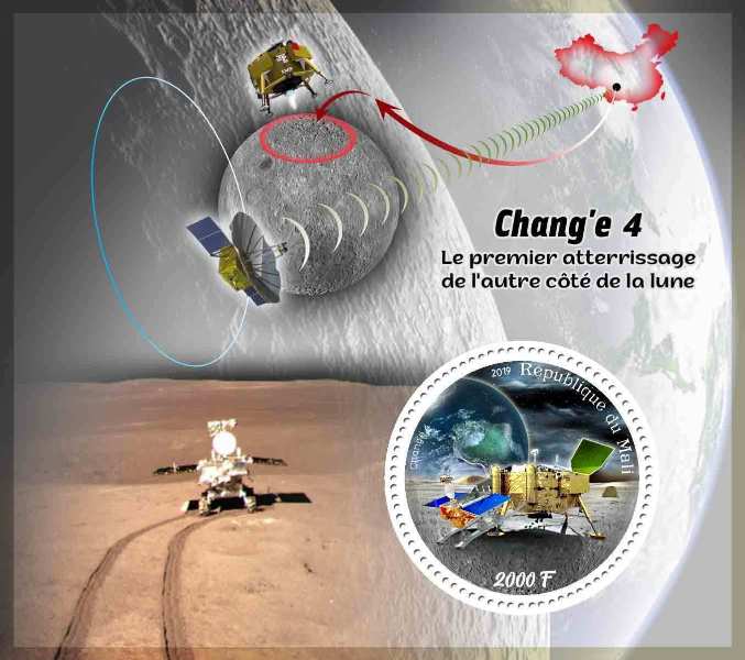 马里发行的嫦娥四号登月和新视野号探测器小型张