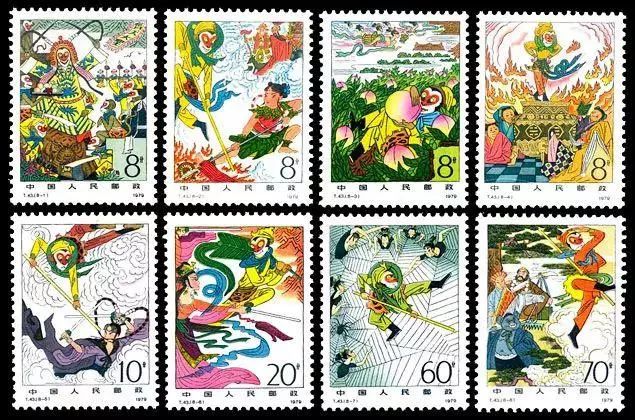 “斗法车迟国”邮票故事情节源于《西游记》第45回《三清观大圣留名 车迟国猴王显法》和第46回《外道弄强欺正法 心猿显圣灭诸邪》。