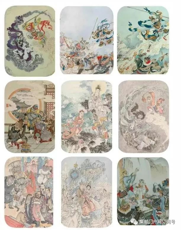 从图稿可以看到,这是之前的图稿和第三组邮票图稿的综合。其中三打白骨精为两幅。大闹天宫也为两幅。设计者为李云中。