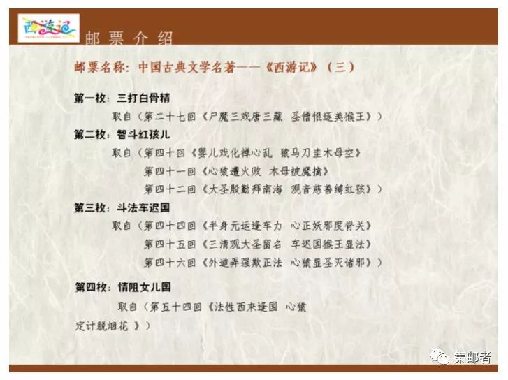 新邮《西游记(三)》《中国古镇(三)》的一些资讯... 日期:2019-03-29 集邮者 4月份发行的《西游记3》及《古镇3》的资料频频爆出,邮总虽然还没有正式对外公布图稿,但也隐约有所透露,看看最新的一些资讯吧: ✉ 来源 巫乱 ✒ 集邮者平台整理