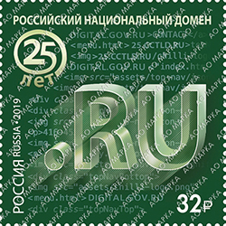 俄罗斯4月5日发行俄罗斯国家域名.RU邮票 日期:2019-04-05 来源:专题集邮信息网 内容简要:设计师:S。Kapranov。面值:32 卢布规格:37×37毫米发行量:135,000... 设计师:S。Kapranov。 面值:32 卢布 规格:37×37毫米 发行量:135,000