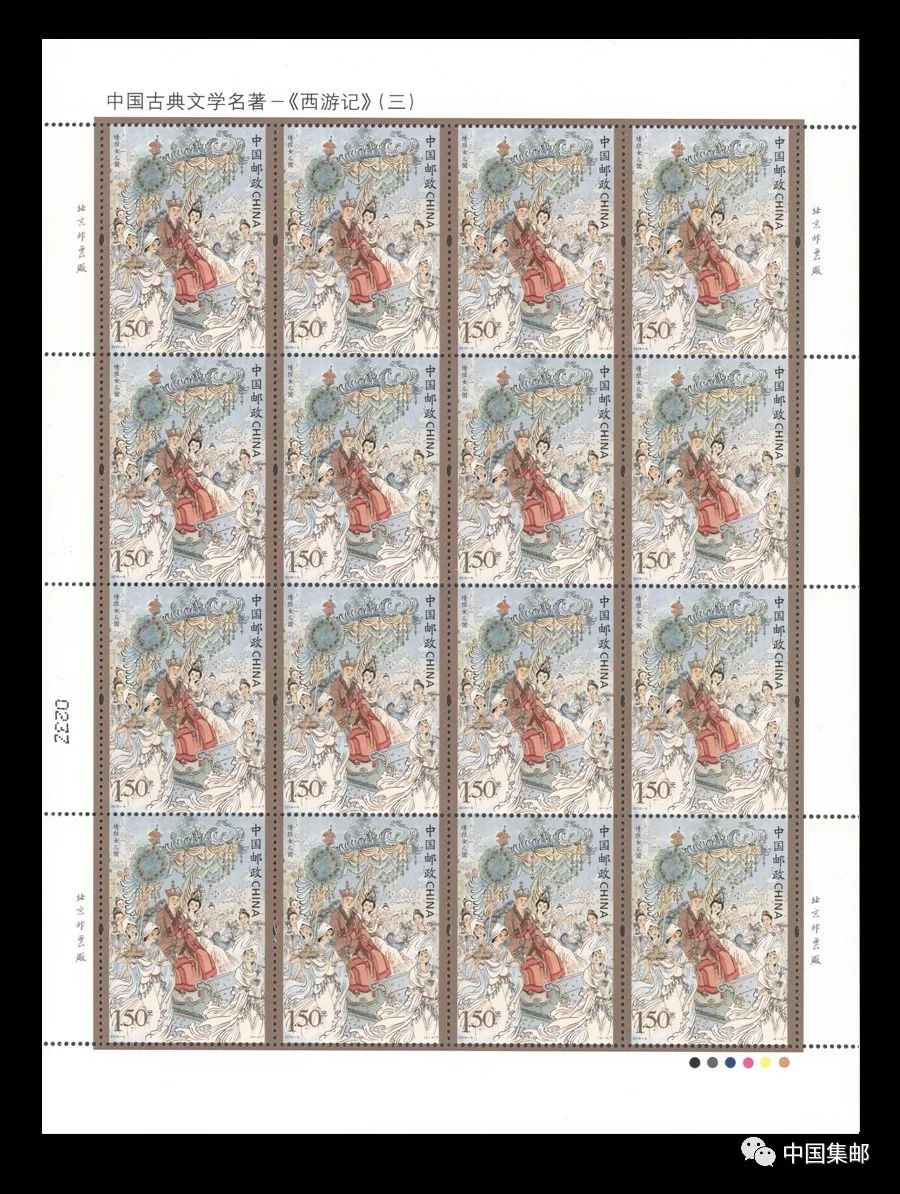 中国邮政定于2019年4月20日发行《中国古典文学名著——〈西游记〉(三)》特种邮票1套4枚,小型张1枚。详情如下: