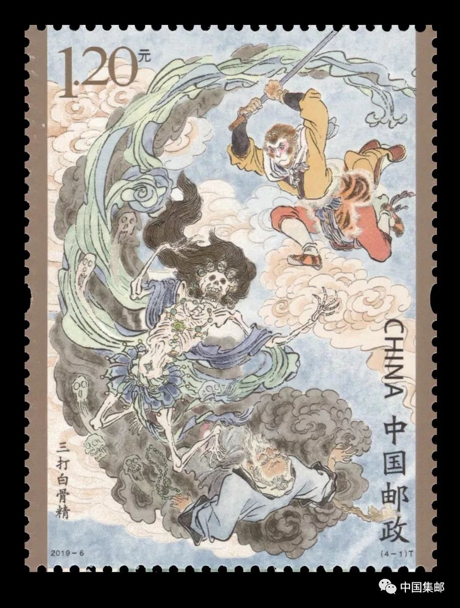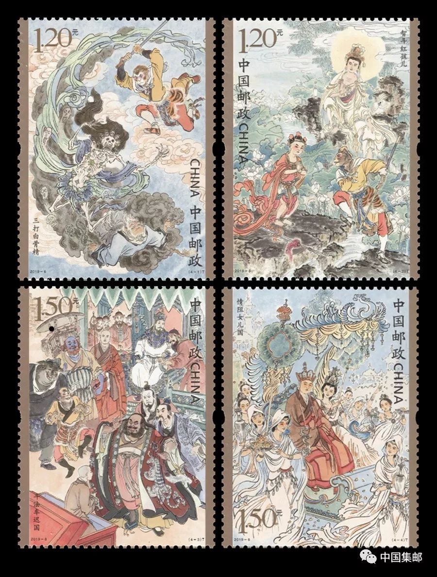 中国邮政定于2019年4月20日发行《中国古典文学名著——西游记(三)》特种邮票1套4枚,小型张1枚。邮票图案名称分别为:三打白骨精、智斗红孩儿、斗法车迟国、情阻女儿国,小型张图案名称为:众神收青牛。全套邮票面值为11.40元。