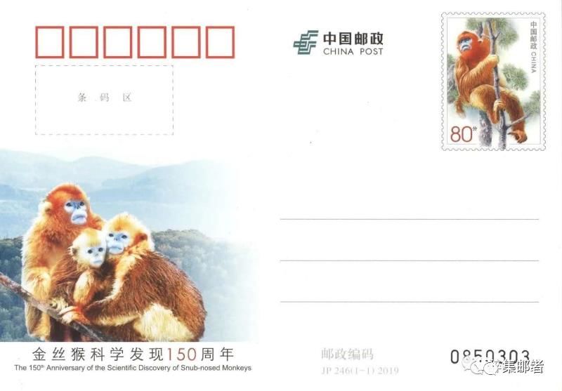 集邮者讯,中国邮政定于2019年4月27日发行《金丝猴科学发现150周年》纪念邮资明信片1套1枚,看来条码区还是比较任性的...