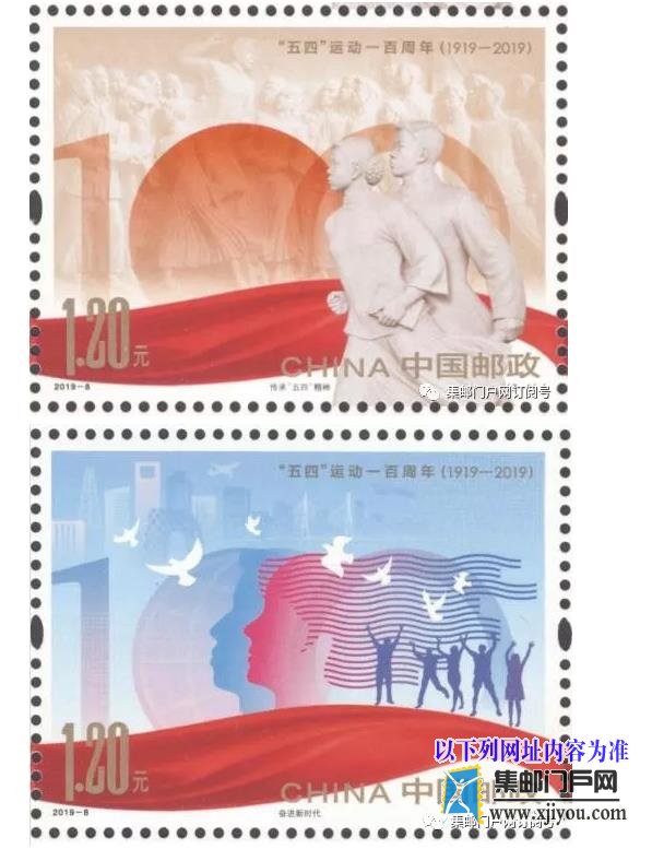 中国邮政定于2019年5月4日发行《“五四”运动一百周年》纪念邮票1套2枚。集邮门户网讯详情如下: