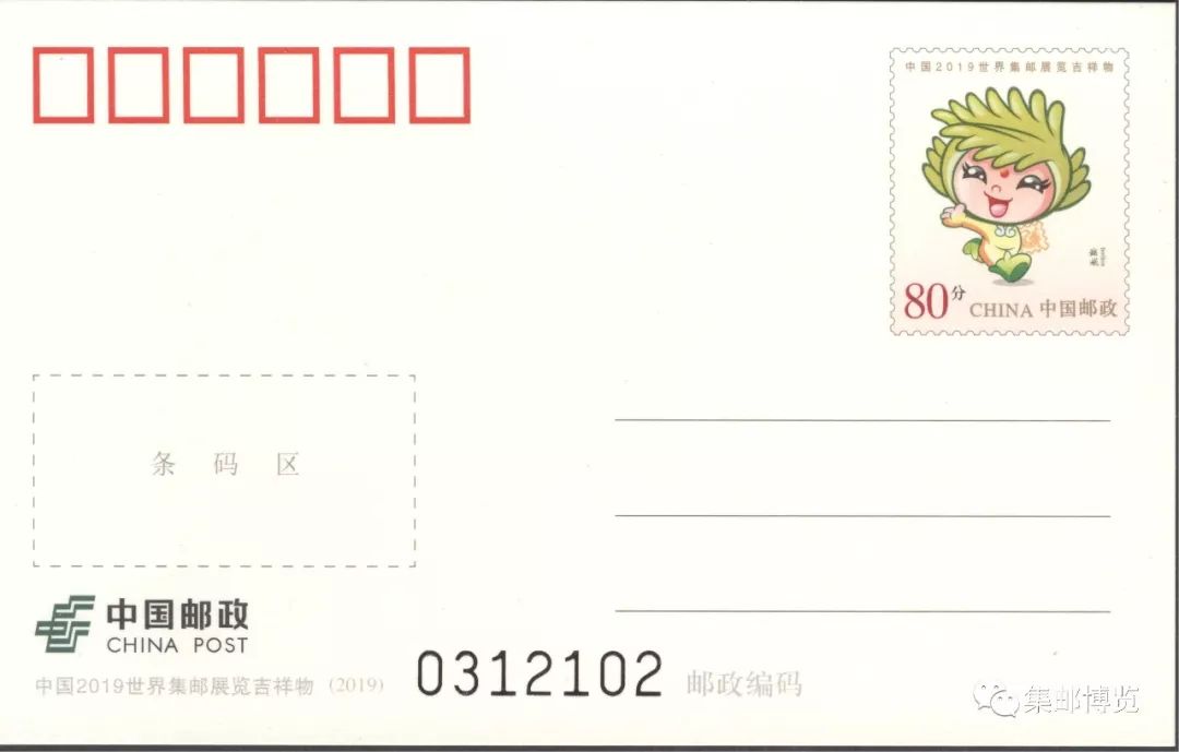 中国邮政定于2019年5月20日发行《中国2019世界集邮展览吉祥物》普通邮资明信片1套1枚。明信片规格为125毫米×78毫米,明信片邮票面值80分。邮资图主图是中国2019世界集邮展览吉祥物。