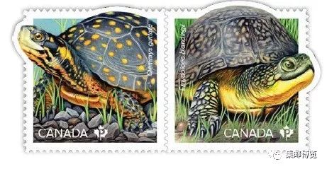 2019年5月23日,加拿大邮政发行一套两枚《濒危水龟》邮票,主角为布氏拟龟(Emydoidea blandingii,这是一种半水栖龟,主要分布在五大湖区)和星点水龟(Clemmys guttata,北美区最小的水龟)。这两种淡水龟在加拿大已经属于濒危物种。