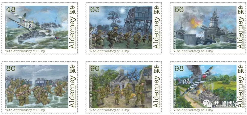 2019年5月29日,根西岛邮政为奥尔德尼岛发行一套6枚《诺曼底登陆75周年》和一枚小型张邮票。第二次世界大战时,包括根西岛、奥尔德尼岛在内的海峡群岛是唯一被德军所占领的英国领土,在1940年到1945年之间被纳粹占领,在诺曼底战役之前,由于英军的封锁,使得岛上的物资严重缺乏,人民非常饥饿。1945年德国战败后英国收回了海峡群岛。