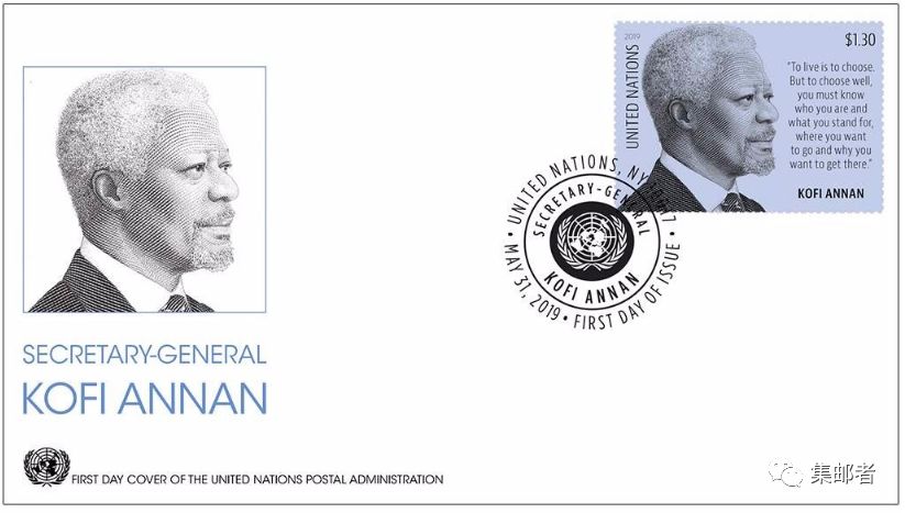 集邮者讯,联合国邮政将于5月31日发行新邮"科菲·安南"普通邮票1枚,集邮者平台也将近期开启预售,这枚邮票由马丁·莫克绘画,虽然是胶版印刷,但细致程度依然"马丁莫克"。