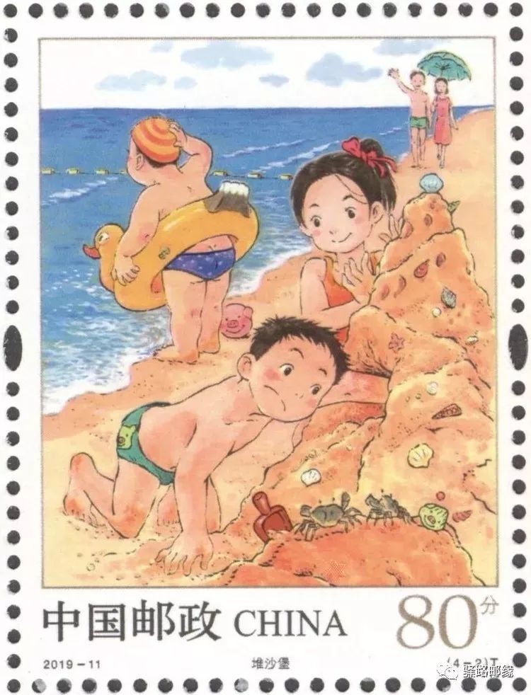 5、由动画导演、绘本画家,曾设计《儿童游戏》邮票第一组的景绍宗设计。