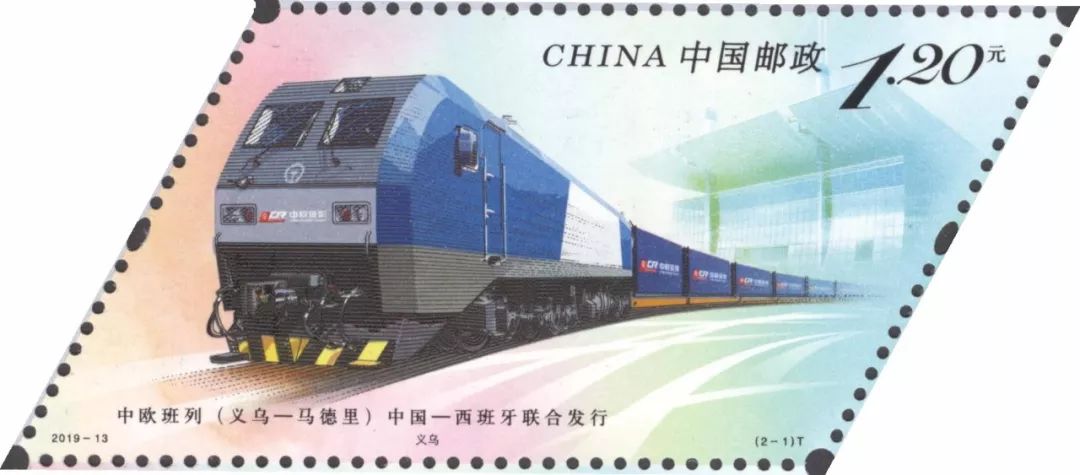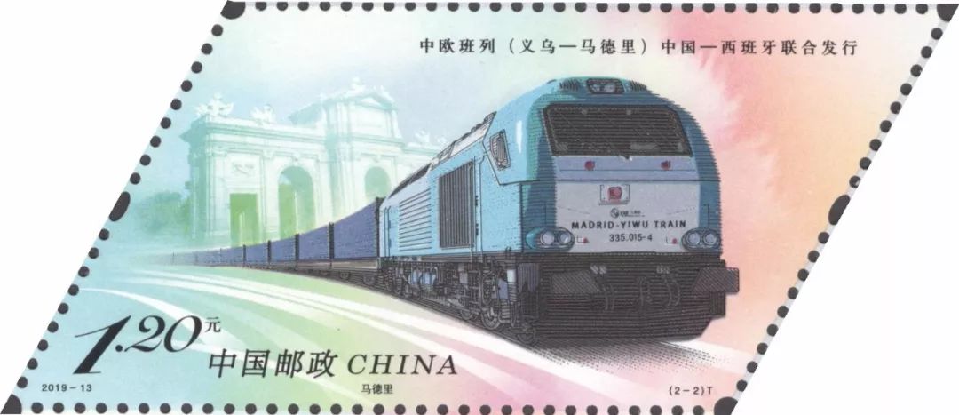 中国邮政定于2019年6月15日发行《中欧班列(义乌—马德里)》特种邮票1套2枚(与西班牙联合发行)。详情如下:
