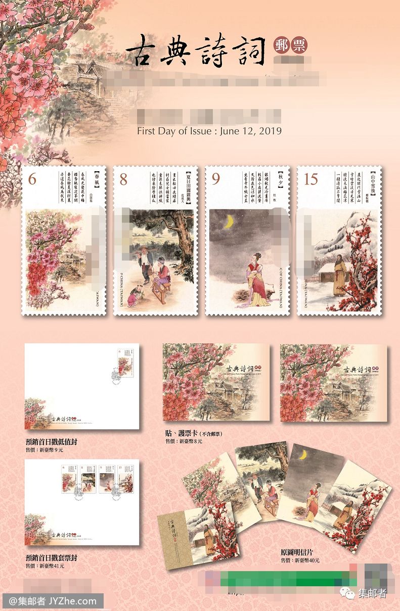 新邮 | 中国台湾6月12日发行《古典诗词》邮票1套4枚 日期:2019-06-06 集邮者 今天 集邮者讯,中国台湾邮政将于2019年6月12日发行《古典诗词》邮票一套4枚,如下图: 套票 首日封 明信片 大版 ✉ 资料 | 巫乱 友情提供 ✒ 编辑 | 集邮者平台