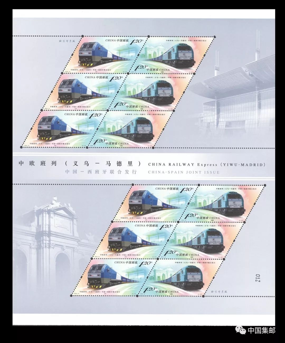 中国邮政定于2019年6月15日发行《中欧班列(义乌—马德里)》特种邮票1套2枚(与西班牙联合发行)。详情如下: