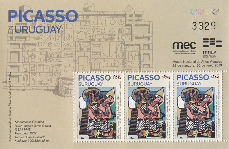 乌拉圭6月21日发行毕加索在乌拉圭小全张 日期:2019-06-21 来源:专题集邮信息网 内容简要:发行日期:06/21/2019代码:2019.25.C价值:65乌拉圭比索平面设计:álvaroRodríguez发行量:10,002枚邮票... 发行日期:06/21/2019 代码:2019.25.C 价值:65乌拉圭比索 平面设计:álvaroRodríguez 发行量:10,002枚邮票