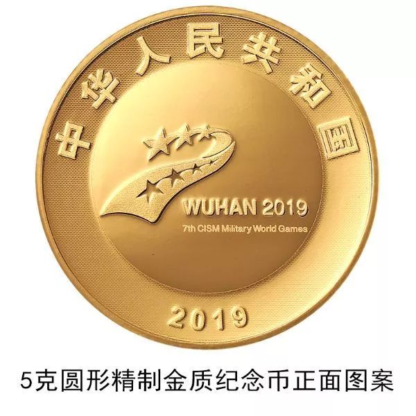 中国人民银行定于2019年7月10日发行第七届世界军人运动会金银纪念币一套。该套金银纪念币共6枚,其中金质纪念币1枚,银质纪念币5枚,均为中华人民共和国法定货币。