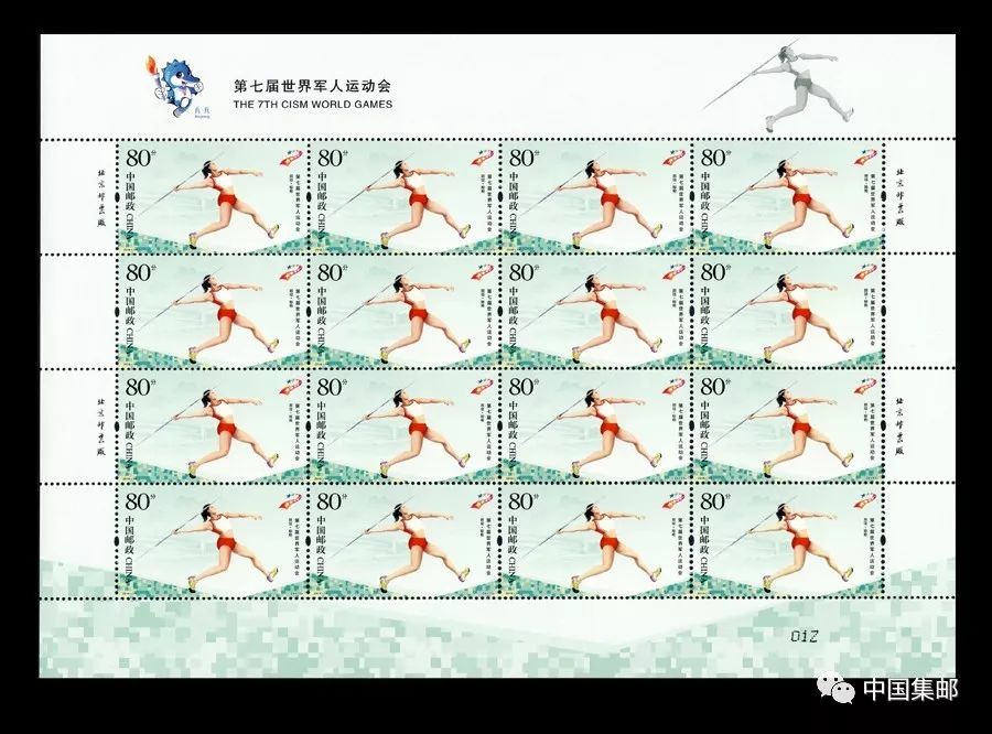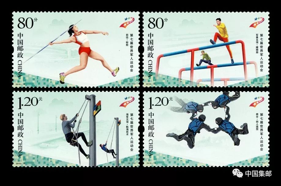中国邮政定于2019年7月10日发行《第七届世界军人运动会》纪念邮票1套4枚,全套邮票面值为4元。