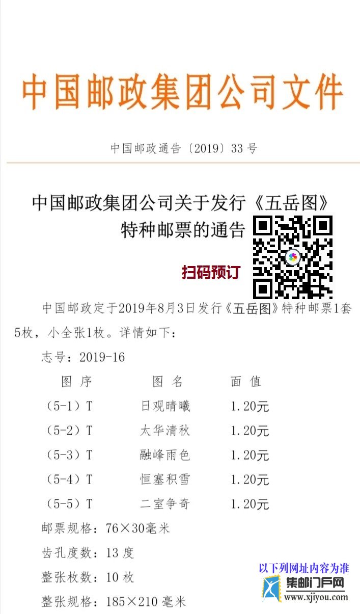 2019-16《五岳图》古画邮票、小全张发行公告(胶雕套印,76*30超宽票幅)